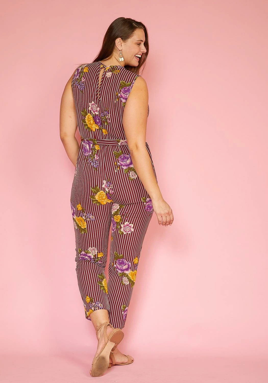 Fused with both stripe and floral patterns and even has a waist tie belt to accentuate the waist line.