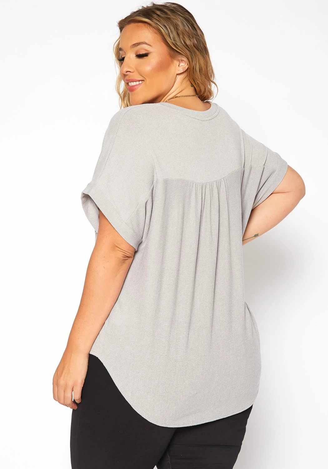 This shirt is so comfortable and flattering. The pockets are a nice touch, and the hemline is just right. I’ve received so many compliments wearing it!