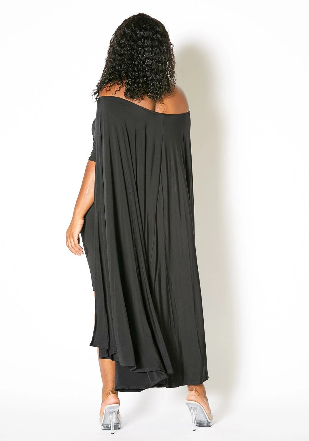 Plus size off shoulder caped bodycon dress for a special night out.