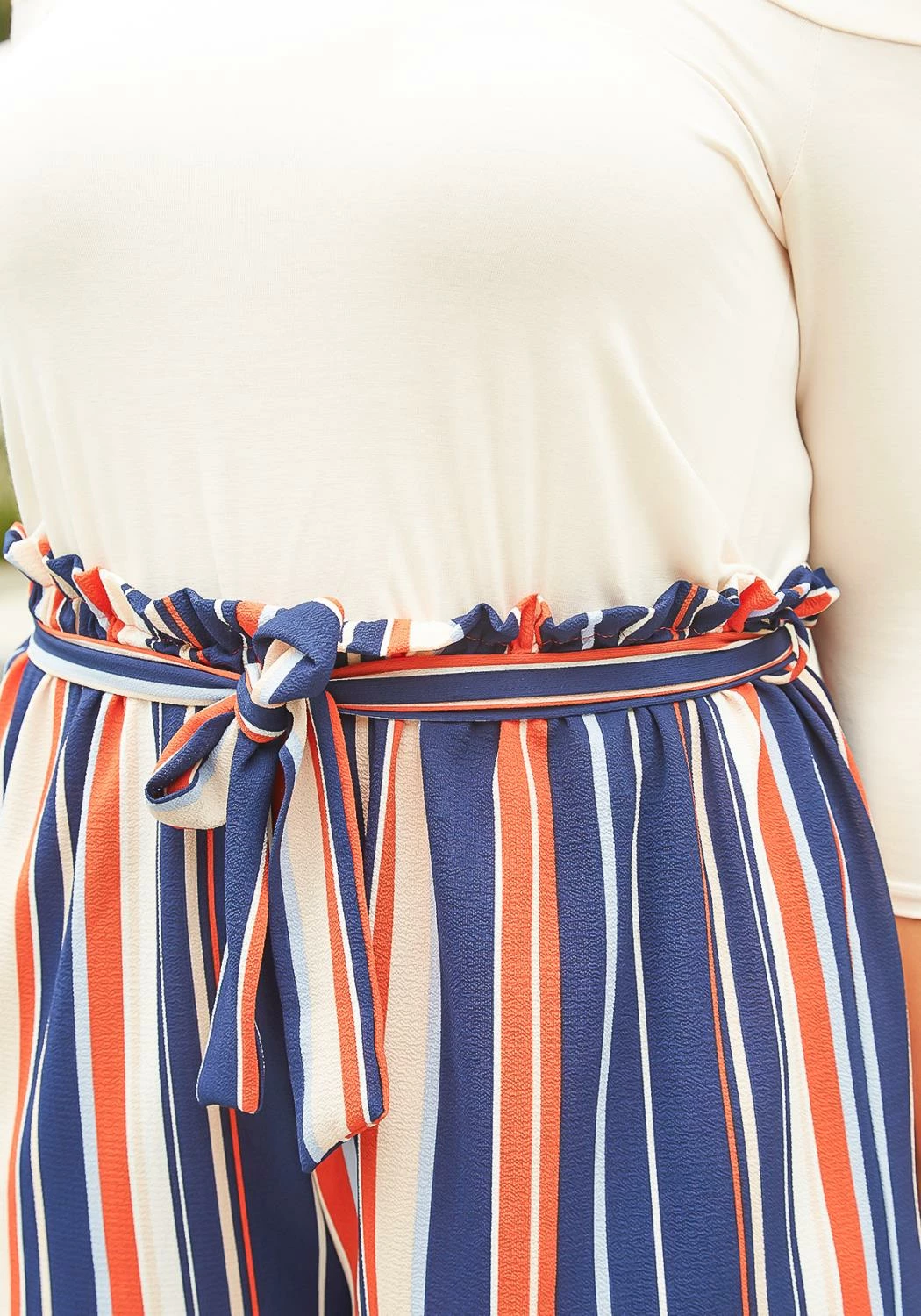 Plus size romper feature solid color top with stripe shorts, gives a illusion of fully coordinated set.