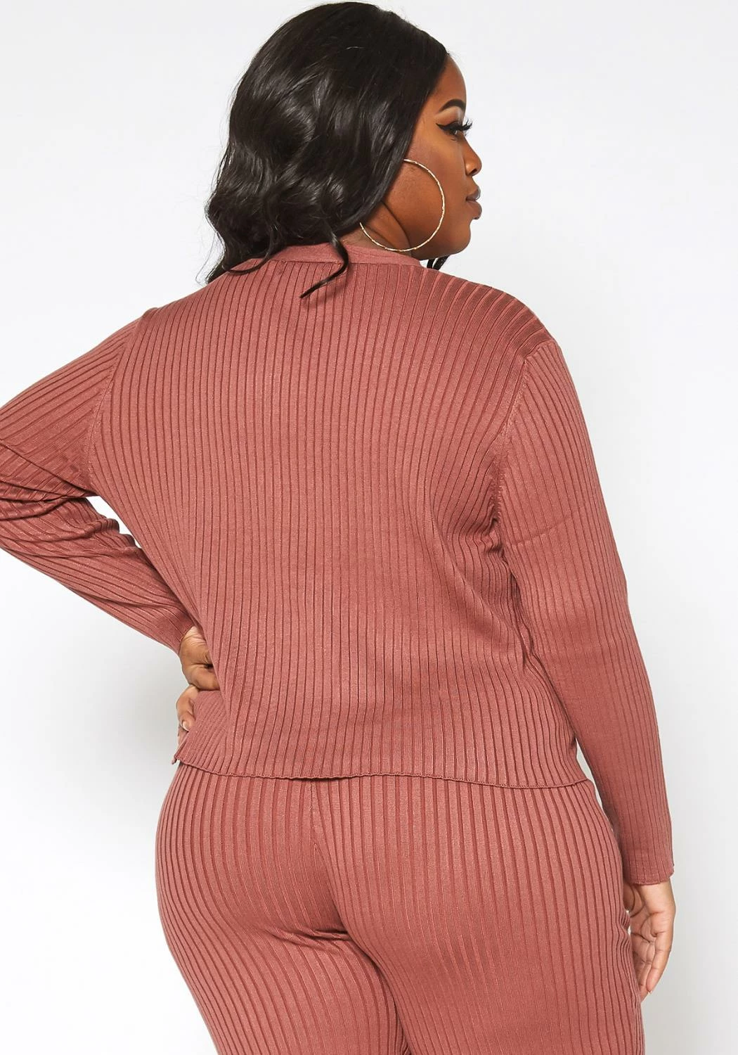 Casual yet lovely plus size women’s ribbed knit long sleeve top in v-neck style and front button hem design.