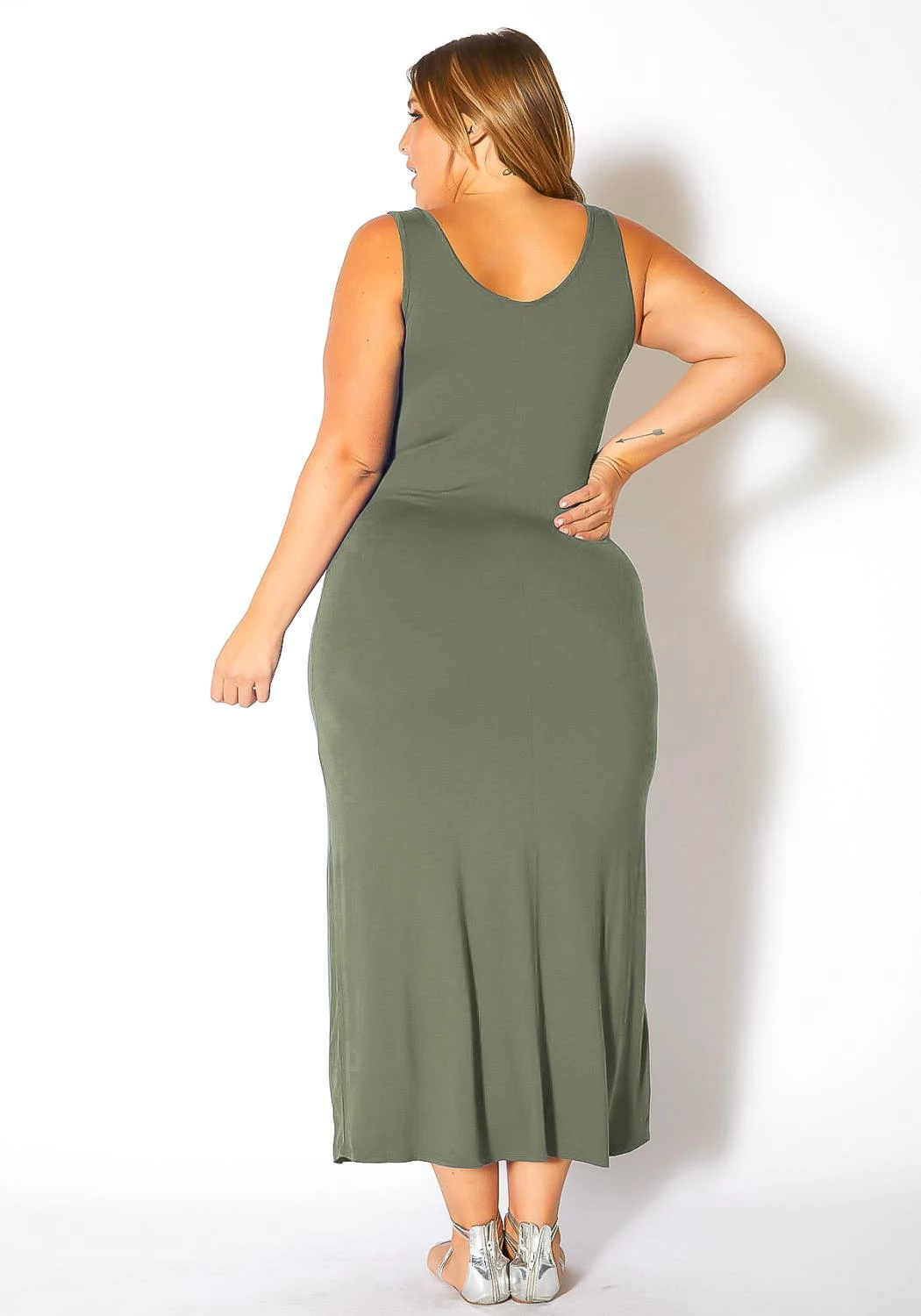Plus size women’s scoop neck maxi tank dress for daily casual wear.