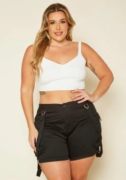 Plus Size High Rise Cargo Shorts Overalls