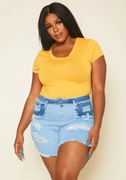 Vibrant Plus Size Light Denim Distressed Shorts