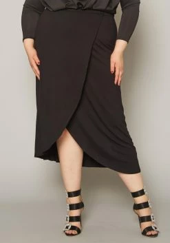 Plus Size High Waist Overlay Midi Skirt