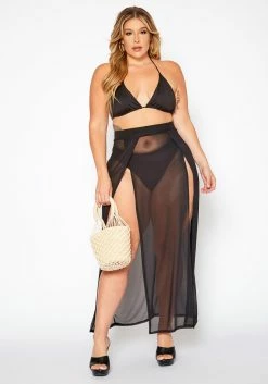 Plus Size High Waist Double Slit Hem Cover Up Skirt
