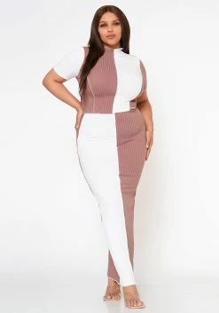Plus Size Color Block Crop Top & Skirt Set