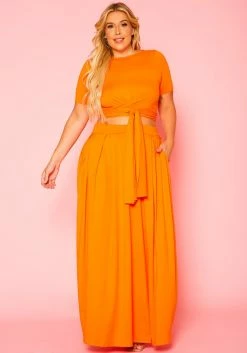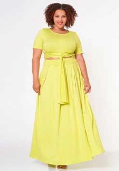 Plus Size Crop Top & Maxi Flare Skirt Set