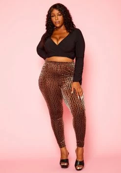 Plus Size Crop Top & Greek Key Print Pants Set