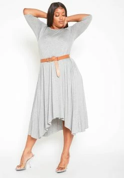 Asoph Plus Size Asymmetric Cut Fit & Flare Midi Dress