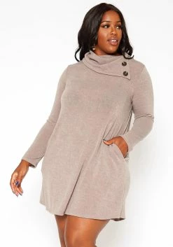Asoph Plus Size Asymmetric Cowl Neck Mini Dress