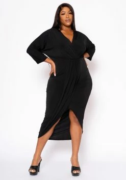 Plus Size Front Collar Tie Bodycon Midi Dress