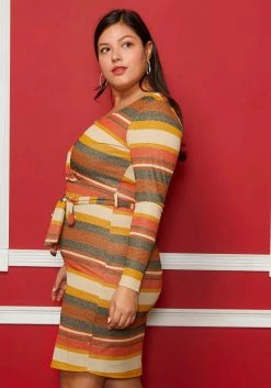 Asoph Plus Size V-Neck Multi Colored Tie Front Dress
