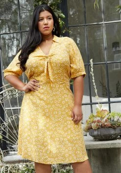 Pleione Plus Size Tied Open Front Collard Floral Dress
