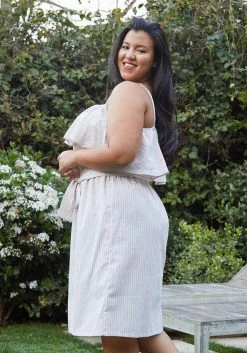 Pleione Plus Size Ruffle Empire Tie Waist Sun Dress