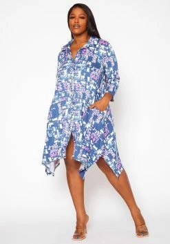 Plus Size Abstract Floral Pattern High Low Maxi Dress