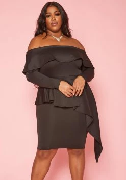 Plus Size Asymmetric Peplum Off Shoulder Mini Dress