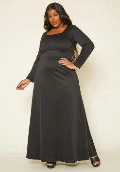 Plus Size Classic Square Neck Long Sleeve Maxi Dress