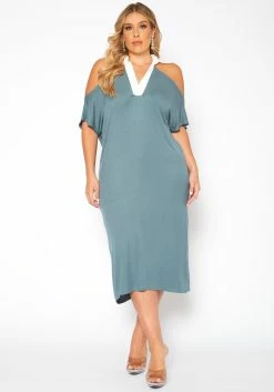Plus Size Collared Bodycon Dress With Mesh Sleeves