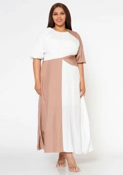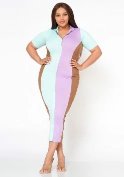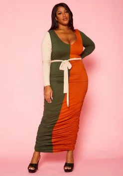 Plus Size Color Splice Fit & Flare Maxi Dress