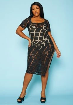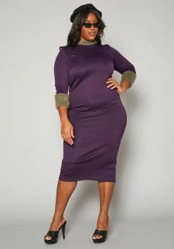 Plus Size Gold Cuffed Chiffon Sleeve Bodycon Dress