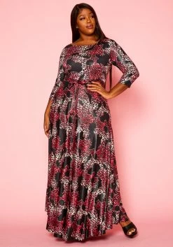 Plus Size Fuchsia Leopard Print Fit & Flare Maxi Dress