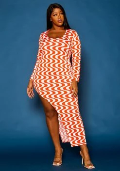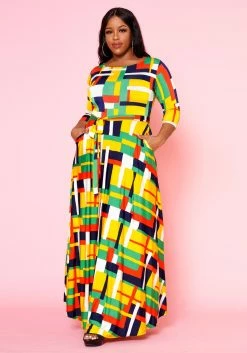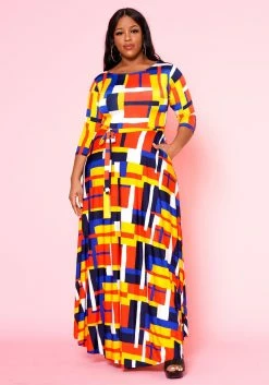 Plus Size Geometric Pattern Fit & Flare Maxi Dress