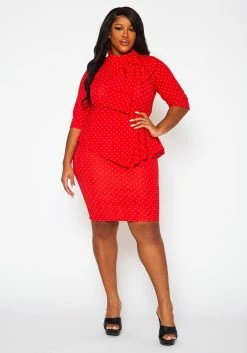Plus Size Polka Dot Print Peplum Mini Dress
