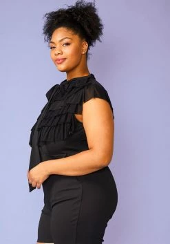 Plus Size Ruffle Front Tie Neck Romper