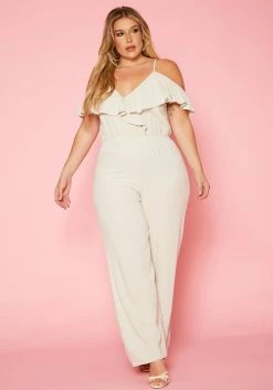 Plus Size Ruffle Hem Flare Jumpsuit