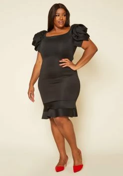 Plus Size Ruffle Hem Cocktail Dress
