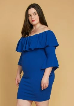 Plus Size Ruffle Off Shoulder Party Dress