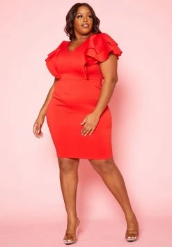 Plus Size Ruffle Sleeve Mini Dress