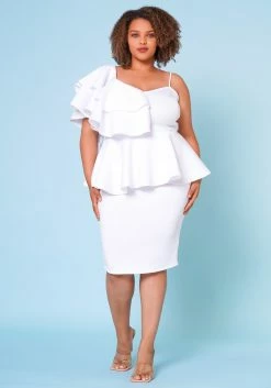 Plus Size Ruffle One Sleeve Peplum Dress