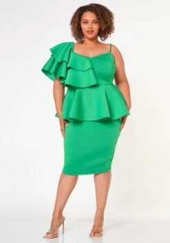 Plus Size Ruffle Peplum Midi Dress