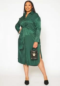 Plus Size Satin Button Front Midi Dress