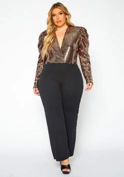 Plus Size Sequin Contrast Flare Jumpsuit
