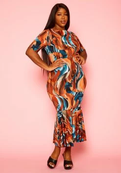 Plus Size Rustic Teal Pattern Flare Dress
