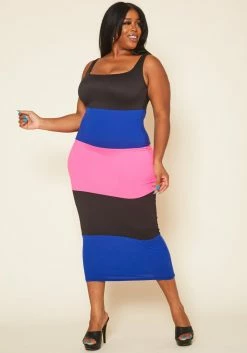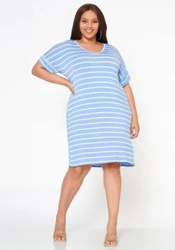 Plus Size Stripe Tube Top Asymmetrical Maxi Dress