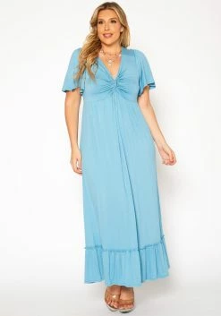 Plus Size Two Tone Pleated Asymmetrical Maxi Dress