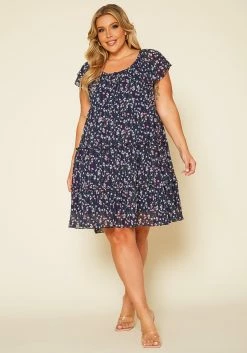 Plus Size Tropic Floral Pattern Flare Mini Dress
