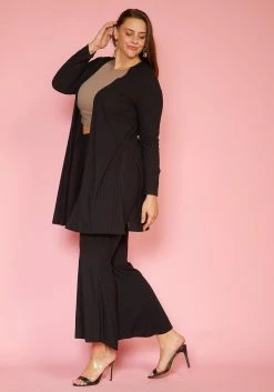 Asoph Plus Size Ribbed Cardigan & Flare Pants Set
