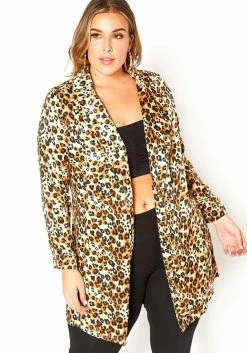 Asoph Plus Size Satin Leopard Open Front Thin Blazer