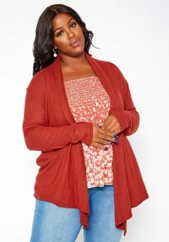 Asoph Plus Size Soft Knit Open Front Waterfall Drape Cardigan