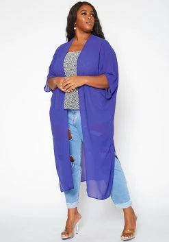 Asoph Plus Size Sheer Open Front Kimono Cardigan