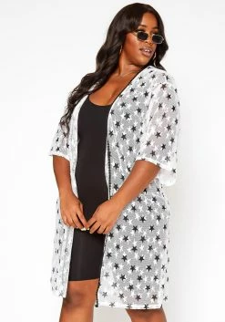 Asoph Plus Size Star Pattern Open Front Kimono Cardigan