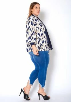 Pleione Plus Size Geo Print Open Front Cardigan