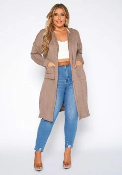 Plus Size Boho Knit Hooded Duster Cardigan