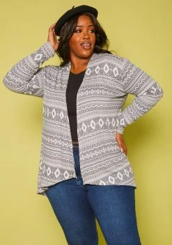 Plus Size Aztec Pattern Open Front Cardigan