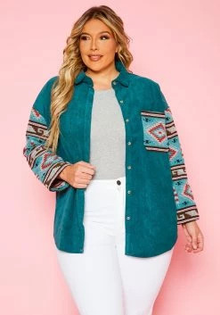 Plus Size Aztec Print Ribbed Jacket